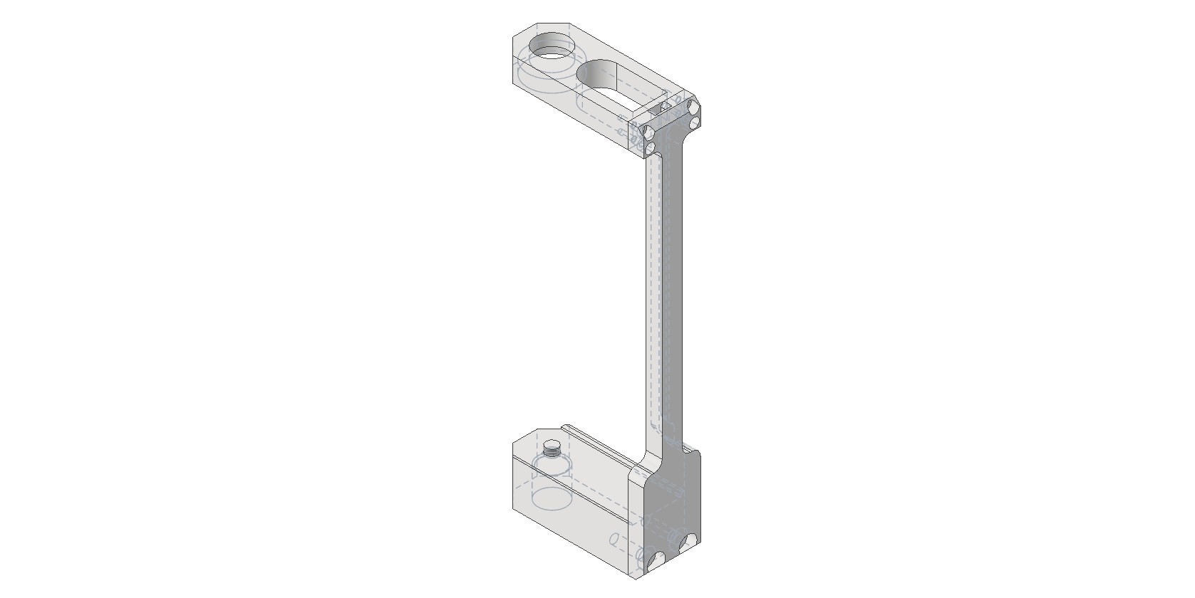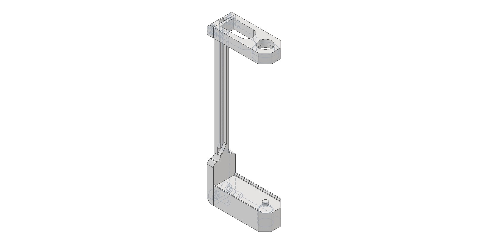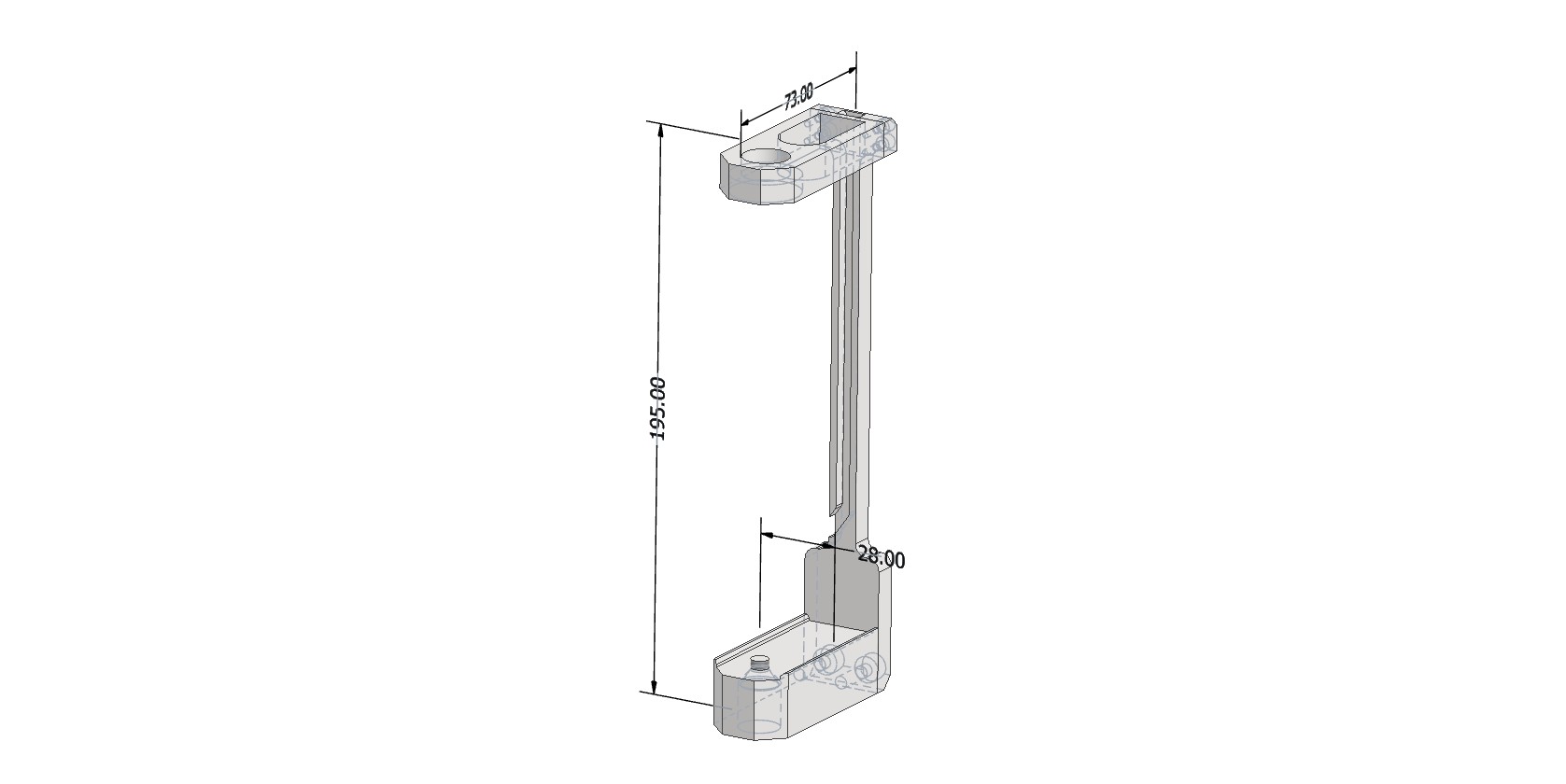 The bracket dimensions are 195×73×28 mm. The top hole is designed for the GNSS antenna mounting screw. The bottom hole is for the 1/4-inch hex socket flat head screw used to attach the camera to the bracket. The bracket is then screwed onto the pole.