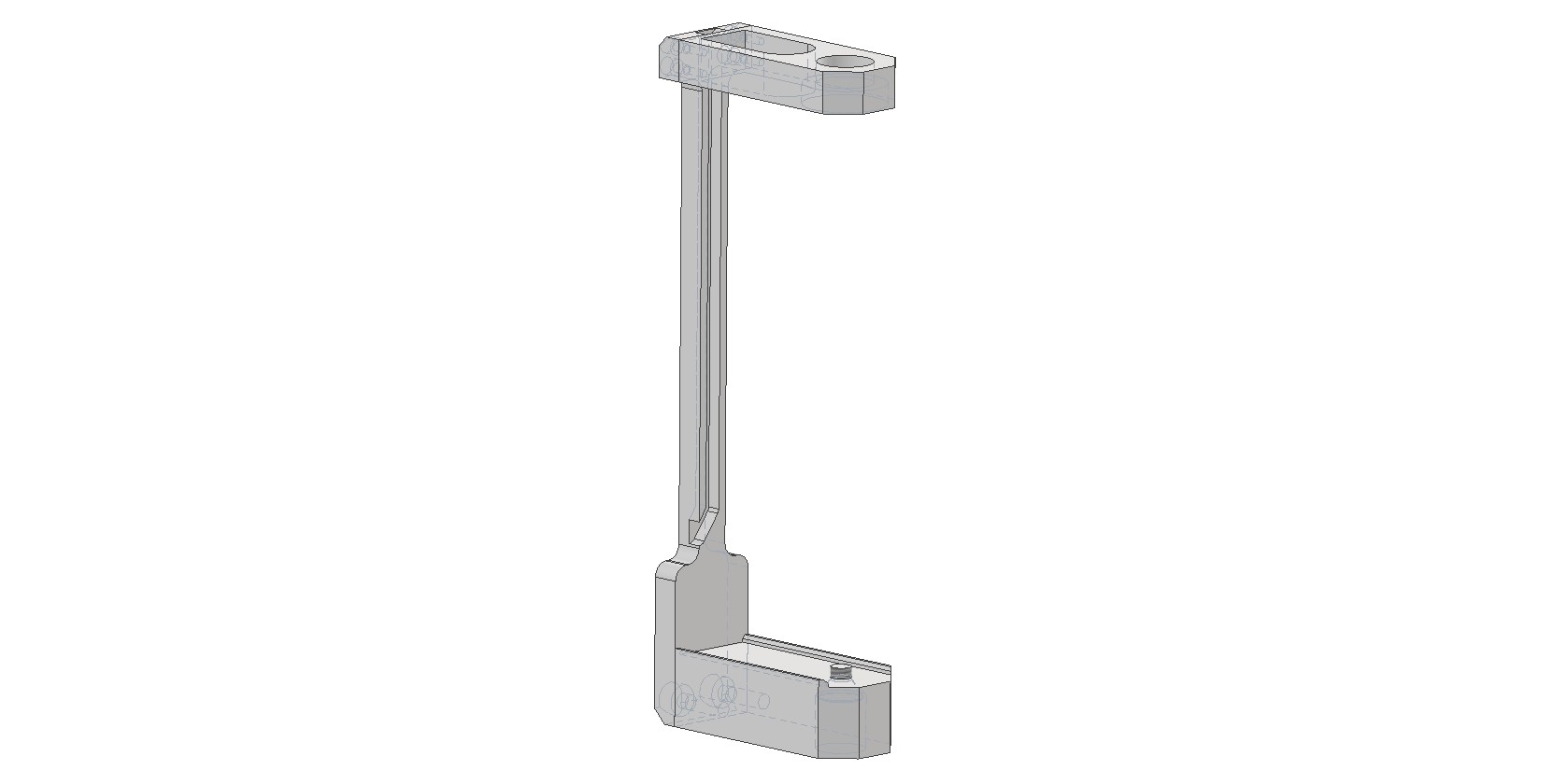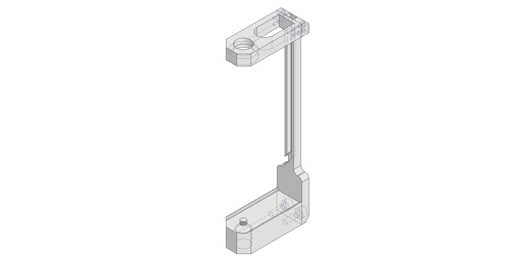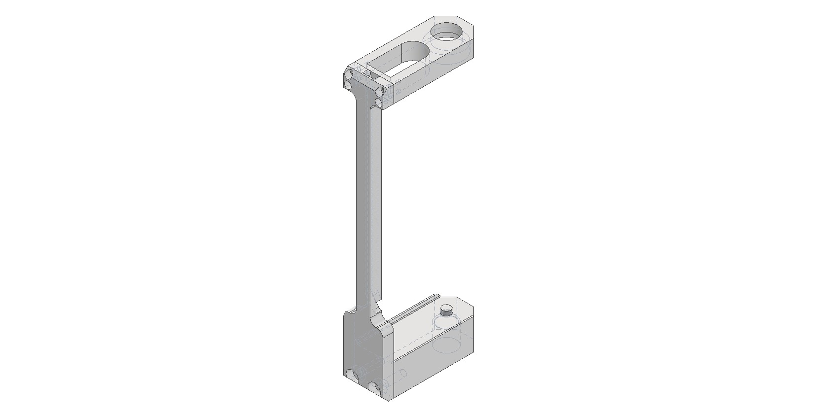 The bracket dimensions are 195×73×28 mm. The top hole is designed for the GNSS antenna mounting screw. The bottom hole is for the 1/4-inch hex socket flat head screw used to attach the camera to the bracket. The bracket is then screwed onto the pole.