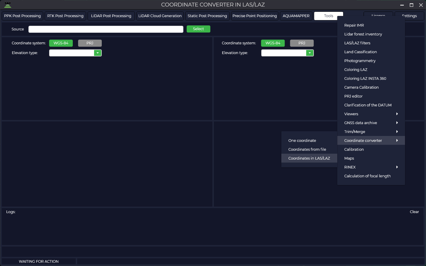 - Added the ability to convert point clouds (.LAS/.LAZ) between Coordinate Systems (in Tools).